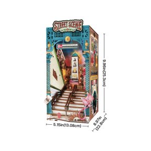 Proměňte svou polici v rušnou městskou ulici. Scéna vyzařuje městskou atmosféru, úzké schody ihned upoutají pozornost a nahoře se otevírá výhled na osvětlené domy, pouliční lampy, dlažbu a jemné detaily chodníků. Spodní část schodiště doplňují drobnosti každodenního života, včetně papírováho kelímku od kávy, růžové crossbody kabelky, které naznačují každodenní rutinu dojíždějících. Pro milovníky cestování a atmosféry města je zde stylizovaný sluneční ciferník a ikona s mapou - připomínka dobrodružství v nové lokalitě. Nepřehlédnutelným překvapením je malé „nádraží“ skryté pod schody a umístěné po straně knihkupectví - objev, který potěší pokaždé, když vložku vytáhnete. Celkový dojem završuje LED osvětlení, které dokáže proměnit scénu ve zlatavý západ slunce nebo pulsující noční město.3D skládačka je skvělý způsob, jak si užít kreativní a edukativní hraní a zároveň vytvořit nádherný model, který se může stát netradičním dárkem či ozdobou interiéru. Skládání 3D skládačky podporuje rozvoj jemné motoriky, prostorového myšlení a trpělivosti. Je to možnost, jak kombinovat zábavu se vzděláváním. Všechny přesně vyřezané dílky do sebe lehce zapadnou bez použití lepidla či nástrojů, aby výsledek byl stabilní a odolný. Skládačka je dodávána v nesloženém stavu, zabalená v krabici s podrobným návodem k sestavení. K napájení slouží 2x AAA /LR03/AM4 1,5 V (nejsou součástí balení). Hlavní vlastnosti: 196 dílkůdoba skládání 4 hodinyvysoká obtížnost sestaveníLED osvětlenísestavení bez použití lepidla a nástrojůvýjimečný vzhledvhodné pro děti i dospělérozvíjí logické a motorické dovednostipodporuje trpělivost dětíideální dárek nebo jedinečná dekorace napájení pomocí 2 baterií AAA /LR03/AM4 1,5 V (není součástí balení)