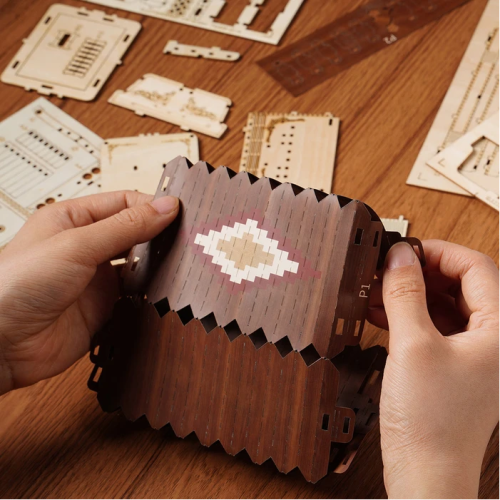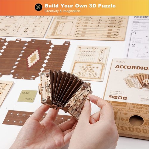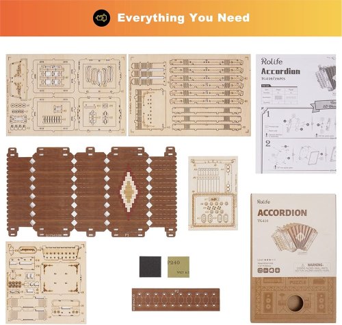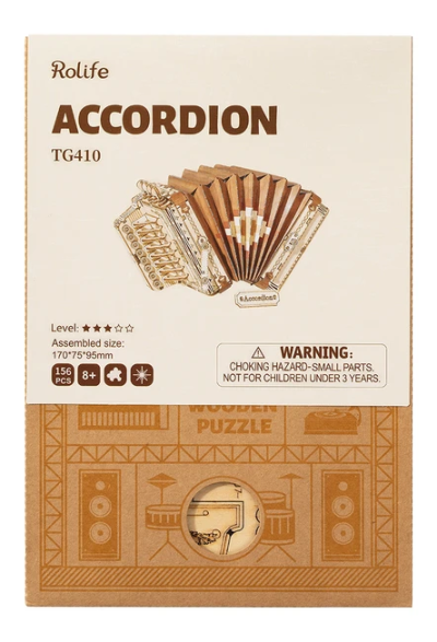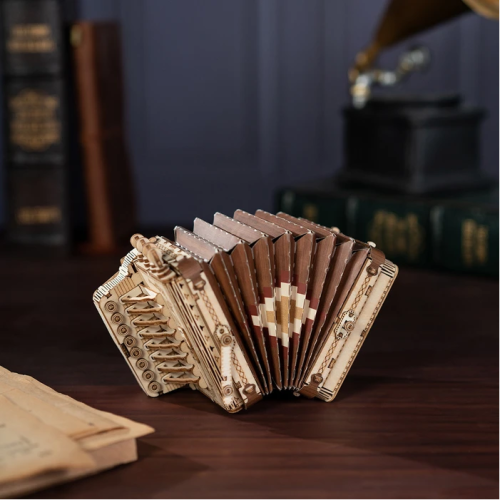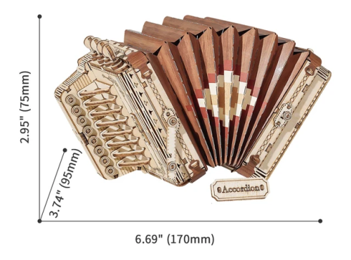 Detailní model hudebního nástroje. Patří do řady skládaček, které jsou určeny k vystavení, nejsou interaktivní a nemají žádné pohyblivé díly. Skládačka je dodávána v nesloženém stavu, balena v kartonové obálce. Vybaveno detailním návodem k sestavení. Hlavní vlastnosti:156 precizně vyřezaných dílkůstřední obtížnost sestavení