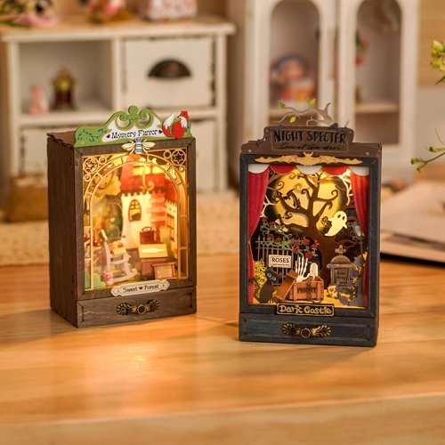 Rozhrňte pomyslnou oponu a rozehrajte okázalá představení ve skříňkových dioramatech. Vytvořte pohádková útočiště pro Vaše figurky a nechejte se pohltit jejich kouzelnou atmosférou! Skříňka je pro větší efekt vybavena hřejivým světlem, které dá vyniknou hloubce scény. Ve spodní části navíc ukrývá šuplík s malou přihrádkou, do které lze uložit drobné upomínkové předměty, mince, nebo šití. Vnitřní prostor je před prachem chráněn praktickým výsuvným panelem z čirého plastu. Stavba zahrnuje přípravu dílů z překližky, lepení papírových potisků a kartonových dílů. Budete k ní potřebovat pouze nůžky, všechny ostatní potřeby jsou již součástí balení. Elektrické součásti LED osvětlení jsou již sestavené, připravené k finální vestavbě. Stavebnice obsahuje i knoflíkové baterie (2×CR2032) sloužící k napájení. Dodáváno s podrobným návodem k sestavení.   Hlavní vlastnosti:stavebnice včetně příslušenství k sestaveníodhadovaná doba sestavení 1 hvhodné pro figurky o velikosti 7–9 cmLED osvětlení (2×CR2032 baterie jsou součástí balení)drobný úložný prostor cca 10×5×1 cm