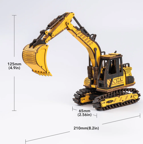 Obtížnost: 3 z 5 (dle rozdělení Robotime). Orientační doba na složení: 2,5 hodiny. Řada Engineering Vehicles obsahuje 5 produktů: vysokozdvižný vozík TG413K, bagr TG508K, buldozer TG509K, sklápěč TG603K, silniční válec TG701K. Rozměr složeného puzzle cca 21 x 7 x 13 cm