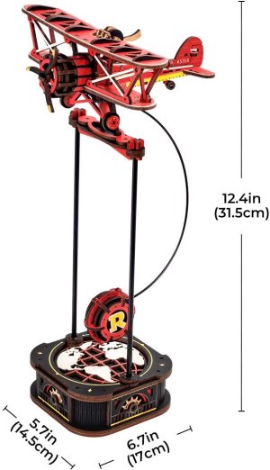 Připoutejte se do červeného dvouplošníku s otevřeným kokpitem, točící se vrtulí a pohyblivými kormidly. Letadlo se naklání a pohupuje, jako by létalo mezi oblaky a vezme vás na dynamické dobrodružství. 3D dřevěná puzzle sada s mechanickými převody. Gravitační kyvadlo. Laserem předřezané dílky z kvalitní lipové překližky pro stavbu svépomocí, lepidlo není potřeba. Rozvíjí technické myšlení, představivost, cit pro detail a jemnou motoriku. Přehledný obrázkový návod krok za krokem, včetně QR kódů pro zobrazení videonávodu. Obtížnost: 2 z 5 (dle rozdělení Robotime).