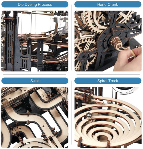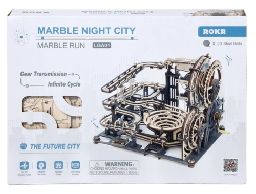 Kuličková dráha Robotime-ROKR Marble Night City je založena na skvělém lidském inženýrství. Spojuje v sobě krásu vědy a strojů a zahrnuje hodně malých přístrojů. Sestavte sadu, zatočte klikou a sledujte, jak se kuličky bláznivě kutálejí po drahách a klopených zatáčkách.