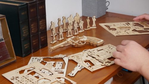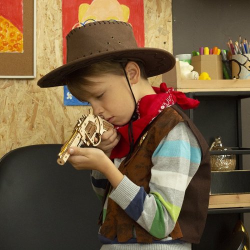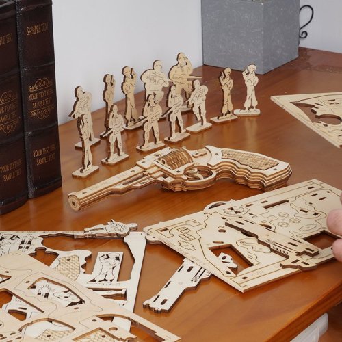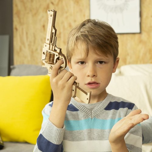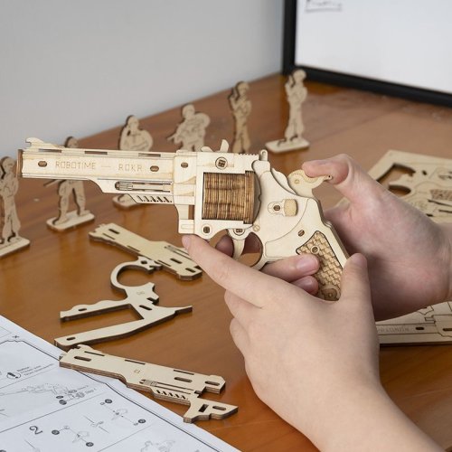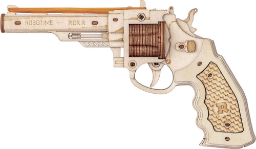 Dřevěný 3D model ROBOTIME ROKR je inspirovaný klasickou pistolí Smith +amp; Wesson Model 60 - Corsac M60 a je její dokonalou replikou v cool steampunkovém stylu.