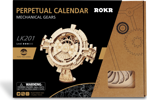 Věčný kalendář dokáže zobrazit kalendárium pro roky 2018 - 2040. Snadné nastavení roku a měsíců díky převodové soustavě. Stabilní a pevný stojan pro vystavení. Díly jsou vyřezány laserem z kvalitní lipové překližky. Rozvíjí technické myšlení, představivost, cit pro detail a jemnou motoriku. Skvělý dárek pro milovníky mechaniky, rodinu a přátele k jakékoliv příležitosti.