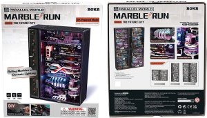 Vítejte v jedinečné, futuristické a městské krajině. Tento paralelní svět se odehrává ve vesmíru industriálního steampunku a neonových světel. Mrakodrapy se tyčí na pozadí potrubí, továren a ostrých zatáček, které jsou svědky zběsilého závodu několika rychlých kuliček. Přesně vyřezané dílky laserem. Sestavení bez použití lepidla. Rozvíjí technické myšlení, představivost, cit pro detail a jemnou motoriku. Obtížnost: 3 z 5 (dle rozdělení Robotime).