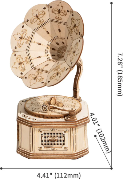 Obtížnost: 2 z 5 (dle rozdělení Robotime). Rozměr složeného puzzle cca 11,2 x 10,2 x 18,5 cm