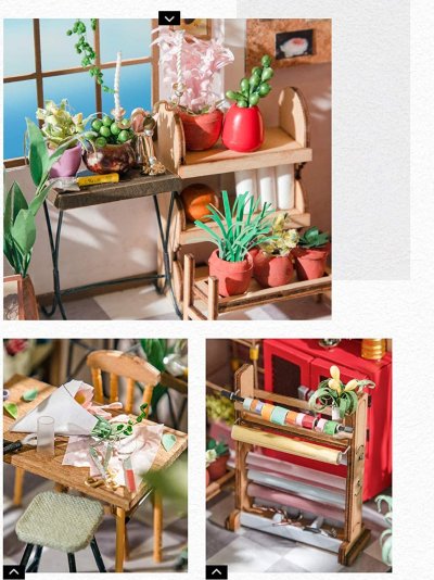 Řada ROBOTIME ROLIFE Do It Yourself Miniature - Happy Corner představuje zmenšené modely místností, pokojů, domů i zahrádek. Vlastníma rukama tak vykouzlíte úžasná díla s desítkami miniaturních detailů. Užijte si hodiny tvoření a kochejte se překrásným výsledkem. Veškerý nábytek a doplňky zobrazené na obrázku je třeba udělat svépomocí (včetně řezání, sestavování a lepení).