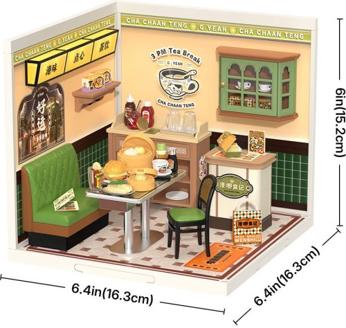 Pohodlně se usaďte do zelené kožené sedačky a podívejte se na nabídku předkrmů na pojízdném podnose. Na výběr máte oblíbené pochoutky jako dimsum, ananasové bochánky, mléčný čaj, dušené knedlíčky a mnoho dalšího. Pokud máte chuť na vydatnější jídlo, menu nabízí různé varianty kuřecího a vepřového masa s rýží – od pečeného kuřete až po šťavnatý dušený vepřový bůček. A samozřejmě nechybí sójová omáčka, chilli olej a další nezbytné dochucovadla, která dotvoří autentický zážitek. Obtížnost: 1 z 5 (dle rozdělení Robotime). Orientační doba na složení: 1 hodinu.