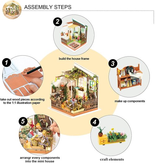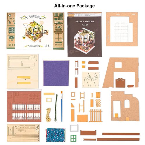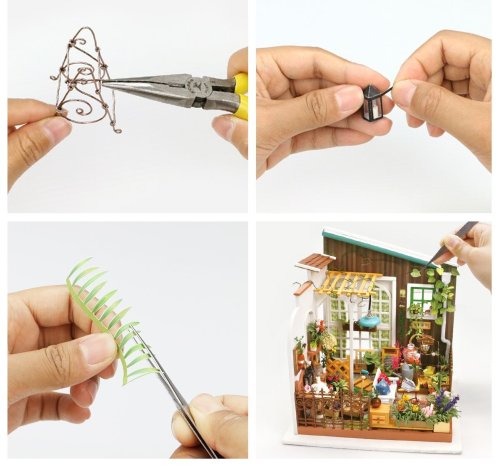 Řada ROBOTIME ROLIFE Do It Yourself Miniature představuje zmenšené modely místností, pokojů, domů i zahrádek. Vlastníma rukama tak vykouzlíte úžasná díla s desítkami miniaturních detailů. Užijte si hodiny tvoření a kochejte se překrásným výsledkem. Všechny potřebné nástroje jsou součástí balení, jediné, co potřebujete, je váš čas a trpělivost, protože veškerý nábytek a doplňky zobrazené na obrázku je třeba udělat svépomocí (včetně řezání, sestavování a lepení), což zabere hodně času.