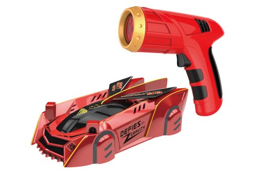 Autíčko pronásleduje laser a dokáže jezdit po stěnách i po stropě. USB nabíjecí kabel v balení.