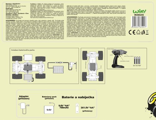 auto má bateriový pack + ovladač 3x1,5V 'AA' (jsou součástí) doba dobíjení 5-6 hodin Výdrž: až 20 min
