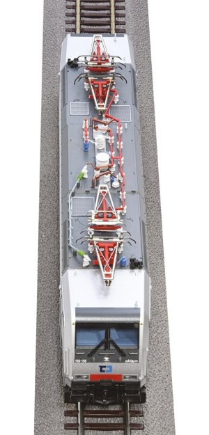 Model elektrické lokomotivy 189 156 společnosti Akiem pronajaté ČD Cargo je propracovaný do nejmenších detailů. Společnost Akiem S.A.S., se sídlem v Saint-Ouen u Paříže, je francouzská leasingová firma specializující se na pronájem lokomotiv. Patří mezi přední poskytovatele leasingu lokomotiv na trhu kontinentální Evropy a vlastní více než 750 lokomotiv různých výrobců. Model vznikl přetiskem některých detailů, jako je například provozní číslo nebo popisy na rámu. Tyto detaily jsou upraveny podle konkrétní předlohy. Vzhledem k použité technologii mohou být přetisky do určité míry viditelné. Specifikace: napájení DCanalogové ovládání délka s nárazníky 225 mmspojka - šachta NEM 362 s kinematikou KKminimální rádius 358 mmsetrvačník 1 náprava s trakčními pneumatikami4 poháněné nápravy5pólový motorelektrické rozhraní pro trakční vozidla PluX223 přední světla a 2 koncová světla - svítí v závislosti na směru jízdyLED světlomet přídavné světelné funkce Hlavní vlastnosti: nasazení v přeshraniční dopravědetailně propracovaná střecha se čtyřmi sběrači proudujemně zpracovaný model s mnoha samostatně osazenými dílypřepínatelné čelní/přídavné osvětlení pomocí DIP přepínače Dokumentace: návod k obsluze (DE, EN, FR)seznam náhradních dílů (DE, EN)
