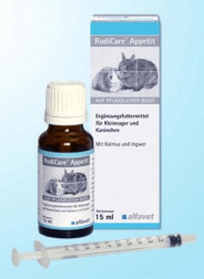 Ztrátu chuti k jídlu je u morčat, králíků a hlodavců nutné brát velmi vážně. Kvůli rychlé látkové výměně dochází rychle k nedostatku energie, což se může negativně projevit na zdravotním stavu jater. Kromě toho u morčat a králíků vede již několik málo hodin bez příjmu potravy k poruše trávení s možnými závažnými důsledky. Zvíře, které nežere, má proto vždy zkontrolovat veterinární lékař, aby bylo možné zjistit příčinu nechutenství. RodiCare® Appetit doplňuje stravu chudou na byliny o puškvorec a zázvor jakož i další chutné aromatické látky (výtažek hořce, pepře a pelyňku) a tím stimuluje chuť k jídlu.
