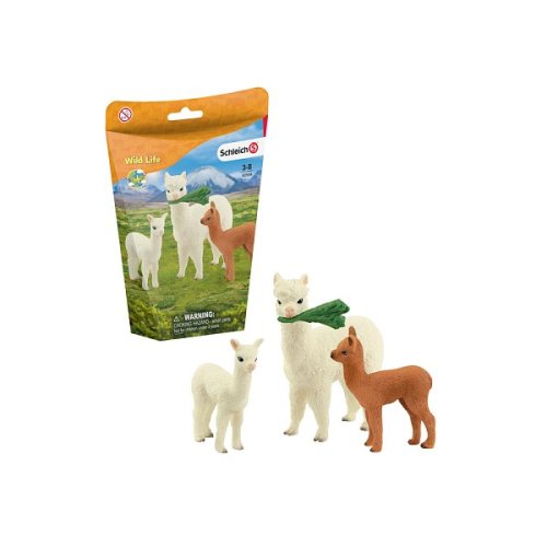 Zvířata v sadě alpaky od Schleich® WILD LIFE pocházejí z jihoamerických And, kde jsou chována pro svou měkkou, teplou vlnu. Jsou to bezhrbí velbloudi s klidným a přátelským temperamentem. Dvě mláďata mají různou srst: jedno je bílé, druhé hnědé. Jsou kojeni matkou po dobu 6-8 měsíců, než začnou jíst trávu. Rozměr balení: 13,6 x 19,2 x 5,8 cm. Nevhodné pro děti do 3 let. Doporučený věk: 3-8.
