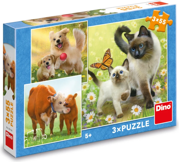 Dětské čtvercové puzzle obsahující 3 obrázky po 55 dílcích. Rozměr motivu: 18 x 18 cm. Věk: 5+