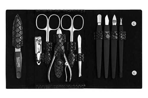 Luxusní manikúrová sada v pouzdru z pravé kůže s hadím motivem. Špičkové výrobky z Německa jistě ocení celá rodina.