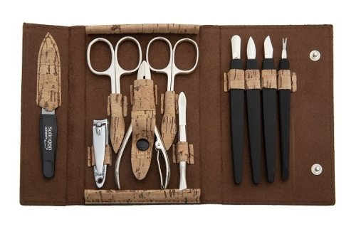 Luxusní manikúrová sada v pouzdru se vzorem korku má tvar peněženky s patentovým zapínáním. Špičkové výrobky jistě ocení celá rodina.