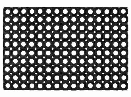 Gumová rohož s děrováním. Velmi praktické rohožky z přírodní gumy se používájí v exterieru i v interieru. Výška rohožky 22 mm, rozměr 75 x 45 cm. EAN 5908239662639