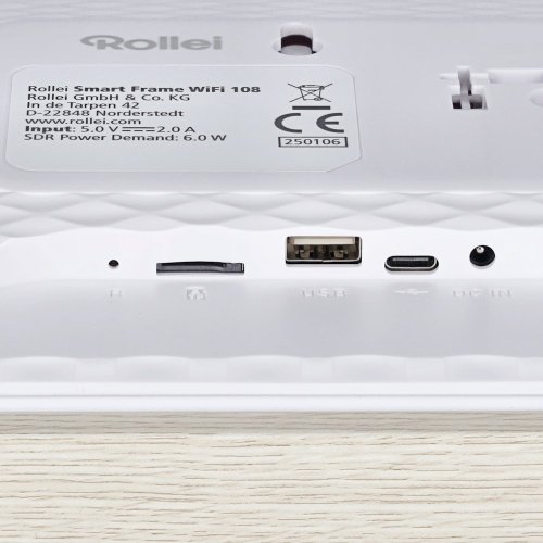 Rollei Smart Frame WiFi 108 nabízí několik způsobů přenosu fotografií a videí. Nejpohodlnější je použití bezplatné aplikace Frameo, která umožňuje odesílat snímky přímo z vašeho smartphonu nebo tabletu přes Wi-Fi. Alternativně můžete použít microSD kartu, USB úložiště nebo přímé připojení k počítači pomocí dodávaného USB-C kabelu.