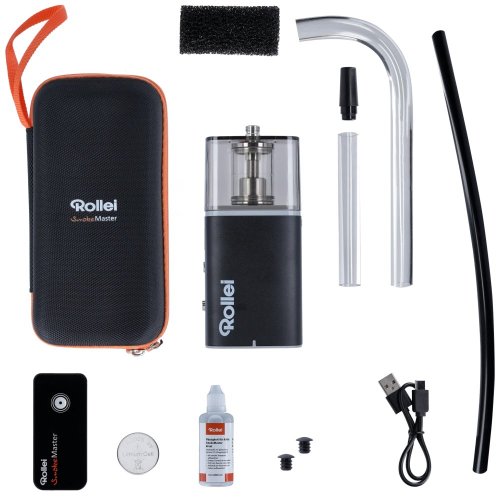 Výrobník umělé mlhy vnáší jedinečný prvek do tvorby fotografií a videí. I přes kompaktní rozměry disponuje výkonem 30 W a 60ml zásobníkem na kapalinu. Dodávaná kapalina je založena na rostlinném glycerinu (VG) a propylenglykolu (PG), které jsou neškodné pro člověka i životní prostředí. Výkonná integrovaná baterie s kapacitou 2550 mAh nabízí dobu provozu až 25 minut (po 3 minutách vždy 2 sekundy přestávka). Plné nabití pak trvá přibližně 3 hodiny. Výrobník lze ovládat buď přímo na přístroji, nebo vzdáleně pomocí přiloženého dálkového ovladače. Součástí balení je 5 různých nástavců pro tvorbu mlhy a praktická brašna, která zaručí snadnou přepravu.
