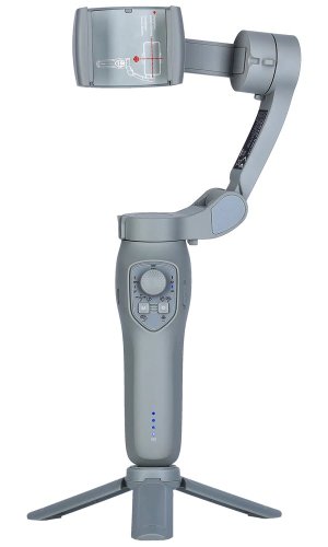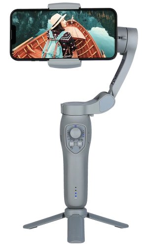 Elektronický stabilizátor pro mobilní telefony s operačním systémem Android či iOS je ideální pro pohodlné natáčení z ruky. Nabízí stabilizaci na třech osách, otáčení o 340° a náklon +/-160°. Rukojeť je vybavena ovládacím joystickem, tlačítkem pro automatickou změnu formátu na výšku nebo na šířku, tlačítkem pro změnu režimu a ovladačem zoomu. Integrovaná baterie s kapacitou 2000 mAh zajistí až 5 hodin provozu a lze ji dobíjet pomocí přiloženého USB-C kabelu. Stabilizátor lze navíc jednoduše složit a o to snadněji přepravovat. Součástí balení je také tripod na spodní část stabilizátoru.
