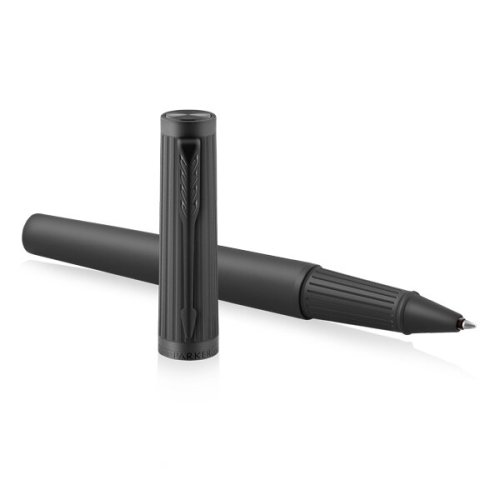 Roller Parker Ingenuity Black BT má mosazné tělo a víčko pokryté saténově matným černým lakem, úchop a víčko jsou zdobené pravidelnými rytinami.