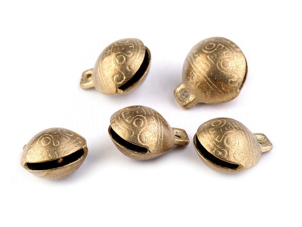 Kovové rolničky mají tvar mušle a povrch zdobený rytými ornamenty. Jejich krásný zvuk je výrazný a čistý. Rolničky mimo dekorování můžete připevnit na obojek vaše domácího mazlíčka při procházkách.
