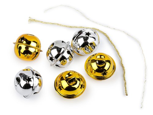 Kovové rolničky vyniknou jako působivá dekorace na vánočním stromečku, věnci, dveřích apod. Zvuk je jemný a tlumený. Součástí balení jsou lurexové šňůrky.