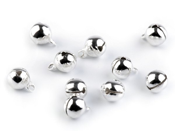 Drobné kovové rolničky standardní kvality, [určeny pouze] k dekoračním účelům - například na vánoční věnce. Zvoní tlumeněji. [Průměr rolniček je cca 7,6 mm, může se mírně lišit. Průvlek jsou 2 mm. Celková velikost rolničky včetně očka je 11 mm.]