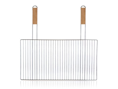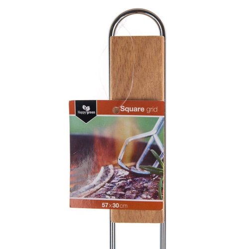 Hranatý grilovací rošt BBQ s dřevěnými rukojeťmi využijete pro snadné grilování masa, zeleniny apod. Je vhodný také pro zděné zahradní grily. Rošt je vyroben z pochromované oceli, počet drátů na roštu je 34 kusů.