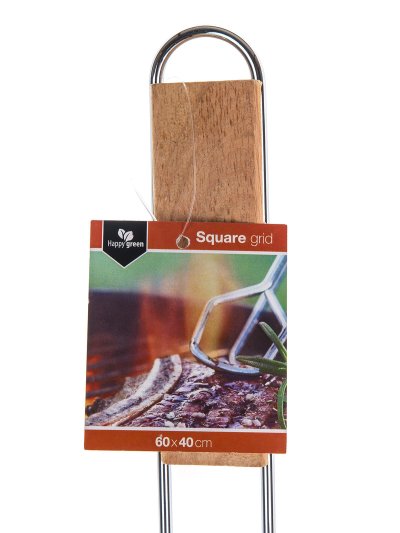 Hranatý grilovací rošt BBQ s dřevěnými rukojeťmi využijete pro snadné grilování masa, zeleniny apod.