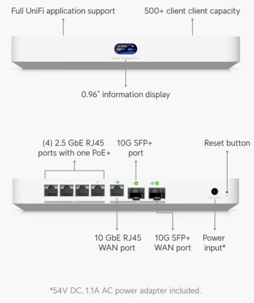 Ubiquiti UniFi Cloud Gateway Fiber (UCG-Fiber) je kompaktní, ale výkonný router určený pro moderní sítě. Nabízí 10Gbps WAN port, 2× 10Gbps SFP+ (WAN/LAN), 4× LAN 1/2,5Gbps a PoE+ port. Díky multi-WAN podpoře s load balancingem, funkcím IDS/IPS a podpoře VPN představuje ideální řešení pro firemní i náročnější domácí sítě.