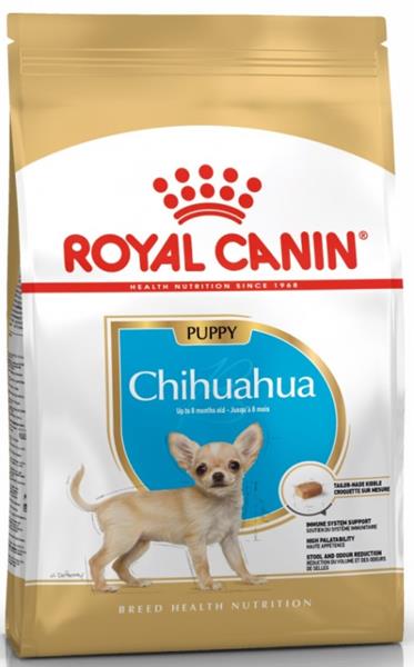 Kompletní krmivo pro psy - speciálně pro štěňata plemene čivava - do 8 měsíců. Chihuahua junior- vybrané příchutě a na míru vytvořený tvar a velikost granule povzbuzují chuť k jídlu i u té nejmlsnější čivavy.