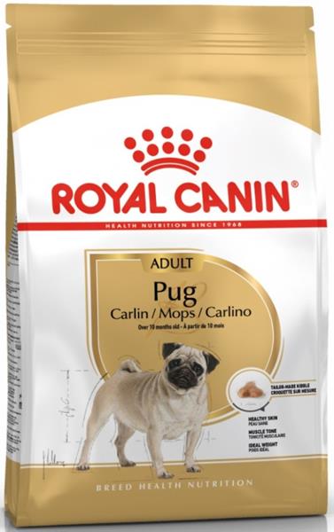 Kompletní krmivo pro dospělé a stárnoucí psy plemene mops - nad 10 měsíců. Posiluje přirozenou funkci kůže jako ochranné bariéry a podporuje její zdraví (EPA a DHA).
