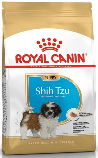 Růst je zásadním obdobím v životě vašeho psa. Je to čas velkých změn, objevů a nových seznámení. Během tohoto klíčového období se přirozená obranyschopnost vašeho štěněte vyvíjí postupně. Z toho důvodu váš pes potřebuje krmivo, které obsahuje živiny podporující jeho zdravý růst a vývoj. Složení krmiva ROYAL CANIN® Shih Tzu Puppy je vytvořeno tak, aby uspokojovalo veškeré nutriční potřeby štěňat shih tzu mladších 10 měsíců. Krmivo podporuje imunitní systém vašeho štěněte hlavně díky patentovanému komplexu antioxidantů, ve kterém je obsažen i vitamín E. Bohatá srst je jedním z hlavních rysů tohoto plemene. Pesíky má dlouhé a husté, podsadu mohutnou. Pravidelné kartáčování a správná výživa jsou dva důležité faktory, které udrží kůži a srst vašeho psa zdravé. Granule obsahují vitamín A a omega-3 mastné kyseliny EPA a DHA. Také jsou obohaceno o olej z brutnáku lékařského, který podporuje funkci kožní bariéry, aby byla kůže zdravá a srst vyživená. Kombinace živin s velmi kvalitní bílkovinou a prebiotiky podporují zdravé trávení a udržuje rovnováhu střevní mikroflóry. Vyrovnaná střevní mikroflóra znamená kvalitní stolici. Granule krmiva ROYAL CANIN® Shih Tzu Puppy je vytvořena speciálně pro brachycefalické čelisti tohoto plemene. Tvar granule umožňuje snadné uchopování a nutí k důkladnému žvýkání. Vůně a textura granule vašeho shih tzu přirozeně přitahuje. Složení: Dehydratované drůbeží maso, rýže, kukuřice, živočišné tuky, izolát rostlinného proteinu (L.I.P. protein vybraný díky své vysoké stravitelnosti), řepné řízky, hydrolyzované živočišné proteiny, rybí olej, minerály, sójový olej, fruktooligosacharidy (0,34 %), hydrolyzované kvasnice (zdroj mannooligosacharidu), olej z brutnáku lékařského (0,1 %), výtažky z kvasnic (zdroj betaglukanu), výtažek z měsíčku lékařského (zdroj luteinu). Analytické složky: Bílkoviny 28 %, tuky 18 %, hrubá vláknina 1,5 %, popeloviny 7,6 %, NFE 35,4 %. Doplňkové látky (na 1 kg): vitamín E: 570 mg, E1 (železo): 41 mg, E2 (jód): 4.1 mg, E4 (měď): 13 mg, E5 (mangan): 54 mg, E6 (zinek): 112 mg, E8 (selen): 0,09 mg. Technologické doplňkové látky: klinoptilolit sedimentárního původu: 10 g. Senzorické doplňkové látky: výtažek z juky: 125 mg. Konzervanty. Antioxidanty. Dávkování: