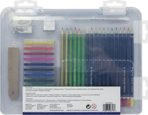 Přemýšlíte nad dárkem pro profesionála nebo příležitostného umělce, který má v oblibě tvořit umělecká díla pomocí klasických barevných tužek? Špičková sada od americké značky Royal +amp; Langnickel v praktickém přenosném obalu potěší nejednoho malého či velkého umělce. Set obsahuje všechny náležitosti potřebné pro kreslení. Je vhodná i pro výtvarníky, kteří teprve začínají s kreslířským uměním. Set obsahuje: 12x barevný uhel, 12x akvarelová pastelka, 4x fluorescentní tužka, 2x metalická tužka, 1x guma, 1x ořezávátko na tužky, 1x papírová tyčinka na roztírání, 1x brousítko na tuhy. Americká kvalita a 60 letá tradice značky Royal +amp; Langnickel přicházejí přímo k Vám domů. Tento světově uznávaný výrobce uměleckých produktů je lídrem na trhu v prodeji výtvarných potřeb. Výrobky jsou pečlivě koncipovány a navrženy tak, aby splňovaly nejvyšší požadované standardy.