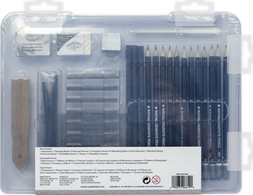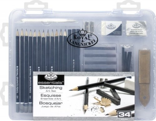 Špičková sada na skicování v praktickém přenosném obalu potěší nejednoho malého či velkého umělce. Set obsahuje všechny náležitosti potřebné pro skicování. Je vhodná i pro začínající výtvarníky. Sada obsahuje: 1x ořezávátko, 1x brousítko na tuhy, 1x guma bílá, 1x měkká guma, 1x papírová tyčinka na roztírání, 3x uhly v tužce - neořezané, 12x grafitových tužek, 6x grafitovací černý uhel čtyřhranný, 4x uhlík., 3x uhlíkové tyčinky. Americká kvalita a 60 letá tradice značky Royal +amp; Langnickel přicházejí přímo k Vám domů. Tento světově uznávaný výrobce uměleckých produktů je lídrem na trhu v prodeji výtvarných potřeb. Výrobky jsou pečlivě koncipovány a navrženy tak, aby splňovaly nejvyšší požadované standardy.