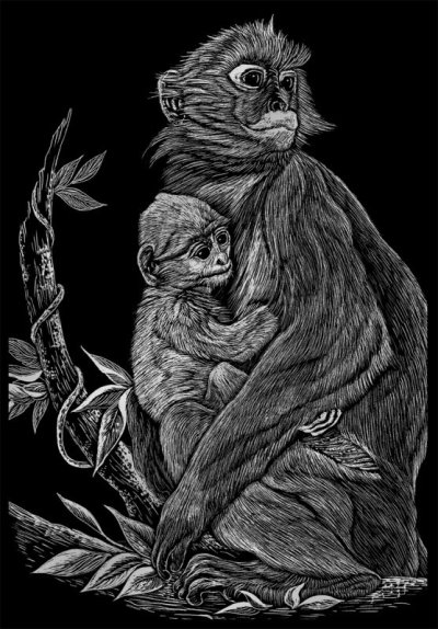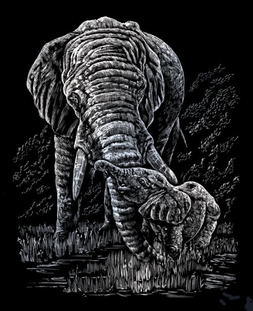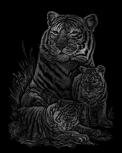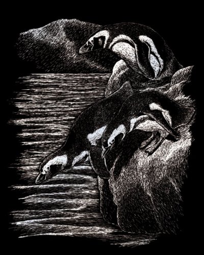 Škrabací obrázky jsou oblíbené napříč generacemi. Přiloženým škrabacím perem je třeba vyškrábat linky předtištěného obrázku. Papír je potažený černou vrstvou a ukrývá zlatý, stříbrný, duhový či holografický podklad.