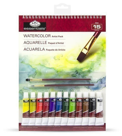 Sada obsahuje: 12 ks avarelových barev v tubě (12ml), 2 ks štětce - plochý a kulatý, skicovací blok papírů na akvarel A4