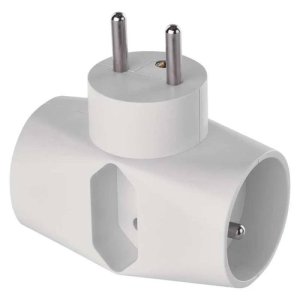 Rozbočovací zásuvka 2× kulatá + 1× plochá, bílá/ 250V