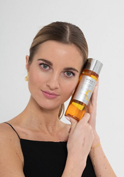 Pleťové tonikum s vitaminem C eliminuje viditelnost pigmentových skvrn a sjednocuje tón pleti. Aktivní látky v čele s vitaminem C, niacinamidem a výtažkem z lékořice dodávají pleti příval hydratace, sjednocují její tón a projasňují ji. Obsažené peptidy navíc bojují proti stárnutí pleti.