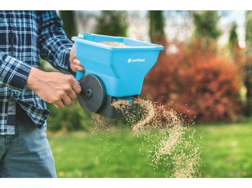 Ruční rozmetadlo. Má otočnou kliku, díky které se snadno ovládá a správně dávkuje. Hodí se k setí trávy, hnojení a v neposlední řadě i zimě při posypu písku nebo soli na chodníky. Šířka posypu: 3,6m. Celková kapacita pro rozmetávaný materiál: 3l. Materiál: plast.