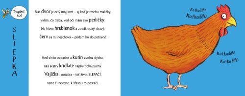 Rýmovaná knížka nejprve představí zvířátka, která žijí na našem dvoře – a pak teprve přijde ta správná legrace! Ze skutečných zvířátek totiž můžete vytvářet velkou spoustu zvířátek popletených! Jejich novými neobyčejnými vlastnostmi a roztodivnými jmény se budou bavit nejen malí čtenáři, ale s chutí se nad nimi zasmějí i ti dospělí. Věřili byste, že do jedné malé knížky se vejde o pár desítek více než stovka různých tvorů? Veselé ilustrace mezinárodně oceňovaného autora jsou doplněné původními českými básničkami.