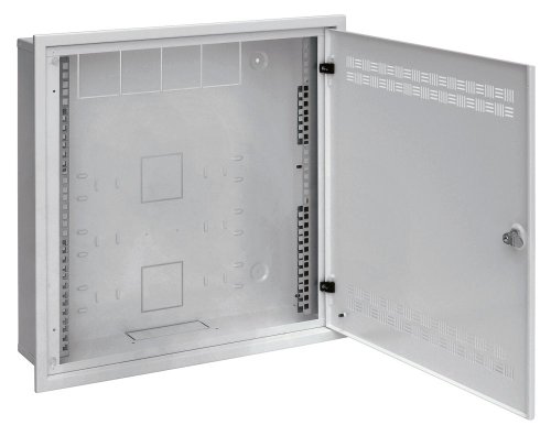 Rozvaděč instalujete do připraveného montážního otvoru ve zdi. Kabely dovnitř vedete předpřipravenými prostupy v zadní, horní a spodní části. Připravené otvory na skříni a rámu udávají správnou pozici pro sestavení. Pokud rám lícuje s dveřmi, je úhel otevření dveří zhruba 110 °, jakmile dveře z rámu vysunete, získáte 180° úhel otevření. Vybrat si můžete mezi levým a pravým zavíráním.