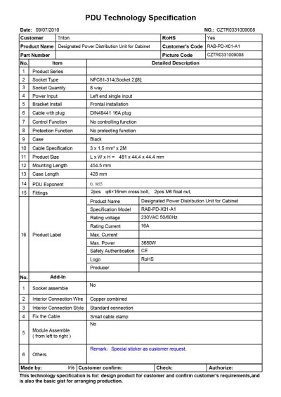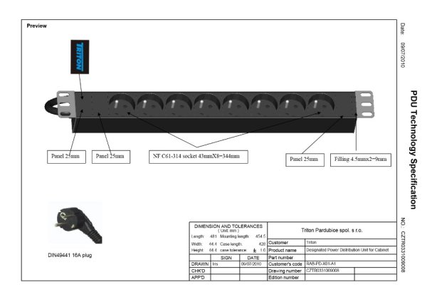 19" rozvodný panel Triton je vybavený 8 zásuvkami