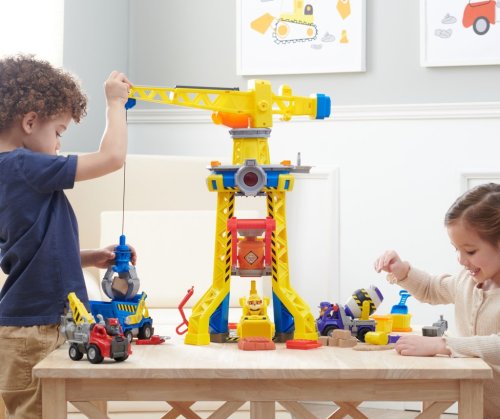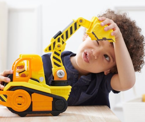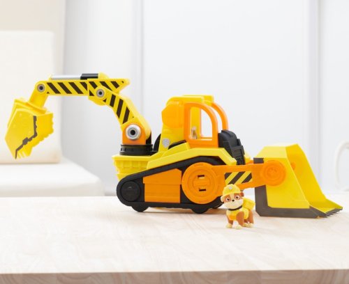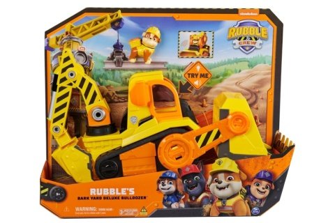Vytvořte jeden tým spolu se svým oblíbeným pejskem z Tlapkové patroly Rubblem a jeho Buldozerem Bark Yard Deluxe! Tato tlapkózní stavebnice obsahuje opravdová funkční kola, dva kloubové nástroje a působivé světelné a zvukové efekty, které z ní dělají nutnost pro všechny fanoušky seriálu Rubble a jeho parta! Tato úžasná figurka a sada vozidel obsahuje figurku Rubbla, která měří 5 cm na výšku a je oblečená v oficiální uniformě Rubbla a jeho party, takže vypadá přesně jako v seriálu. Když přijde čas dát se do práce, posaďte Wheelera na sedadlo řidiče a zatlačte, čímž spustíte působivé světelné efekty a zvuky ze seriálu! Použijte kloubový bagr a začněte kopat a poté odsuňte hlínu z cesty pomocí pohyblivé lžíce, stejně jako to dělá Rubble! Ještě více zábavy ze světa Rubbla a jeho party vám zajistí stavební náklaďák, figurky, sady s kinetickým pískem Build-it nebo sada s jeřábem spolu se sadou Rubblova dílna, které vám umožní vybudovat vlastní staveniště přímo u vás doma (prodávají se zvlášť)! Přiveďte seriál Rubble a jeho parta k životu pomocí Rubblova buldozeru Bark Yard Deluxe!