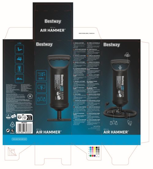 Balení obsahuje ruční pumpu, flexibilní hadici (0,8 m) a 3 ventilové adaptéry.