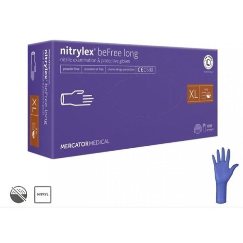 Dlouhé, nejjemnější rukavice v nabídce Mercator Ideální pro ty, kdo mají citlivou kůži náchylnou k alergiím Nitrylex beFree long jsou rukavice pro ty, kdo potřebují jemný, ale pevný výrobek Absence chemických …
