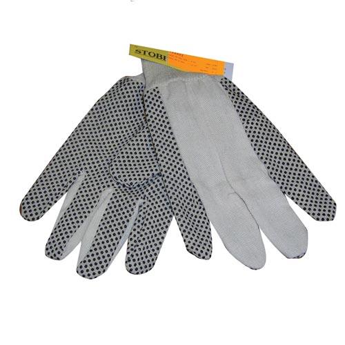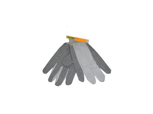 Rukavice šité z bavlněného plátna, s PVC terčíky v dlani a na prstech a pružným nápletem.