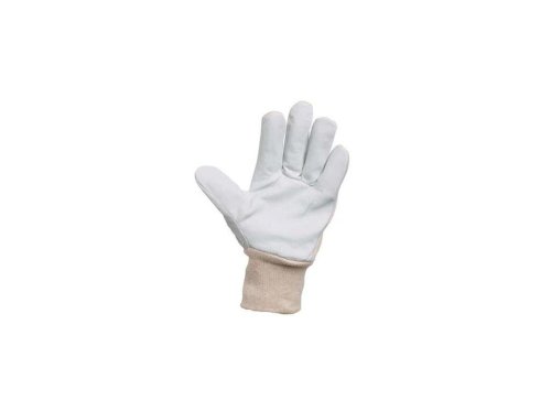 Dlaň z jemné lícové kůže, hřbet z bílé bavlněné tkaniny, náplet na zápěstí.